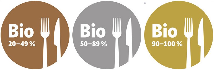 Die erste Stufe der Kennzeichnung ist die Zutatenkennzeichnung, wo einzelne Zutaten oder Produktgruppen als Bio ausgewiesen werden. Zusätzlich kann als zweite Stufe die Ausweisung des Prozentsatzes vom Einsatz an Bio-Lebensmitteln im Unternehmen erfolgen durch die Nutzung des jeweiligen AHV-Kennzeichens. Zugrunde liegt hier die Prüfung des Bio-Anteils als der prozentuelle, geldwerte Anteil der ökologischen Zutaten und Erzeugnisse am Geldwert des Gesamtwareneinkaufs, der von einer Betriebseinheit bezogenen Zutaten und Erzeugnisse.