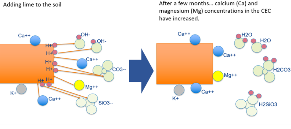 Figure 1. The chemical reaction in the soil extract after adding lime fertilizers to the soil