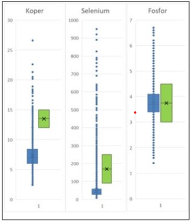 Figure 3 shows the range of measured values in grass silage compared to the target values for phosphorus, copper and selenium. Differences between silages are substantial, and values frequently fall outside the desired range.