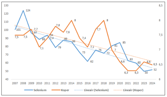 Trace elements such as copper and selenium have also shown a downward trend since 2007 (Figure 2). Although only small amounts are needed, these elements are essential for various bodily processes, including enzyme function.