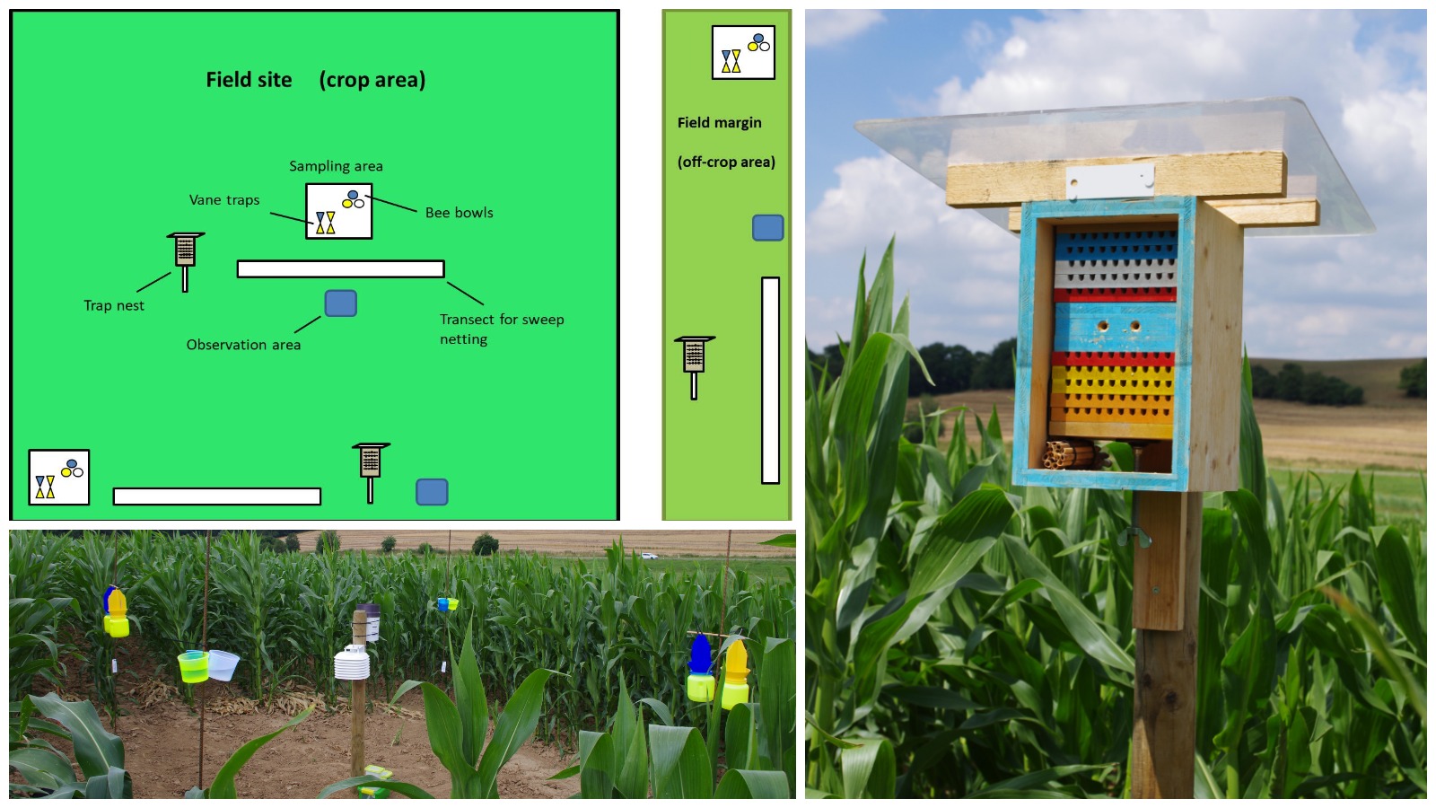 To evaluate a wide range of pollinator species occurring in a specific crop, several methods are available