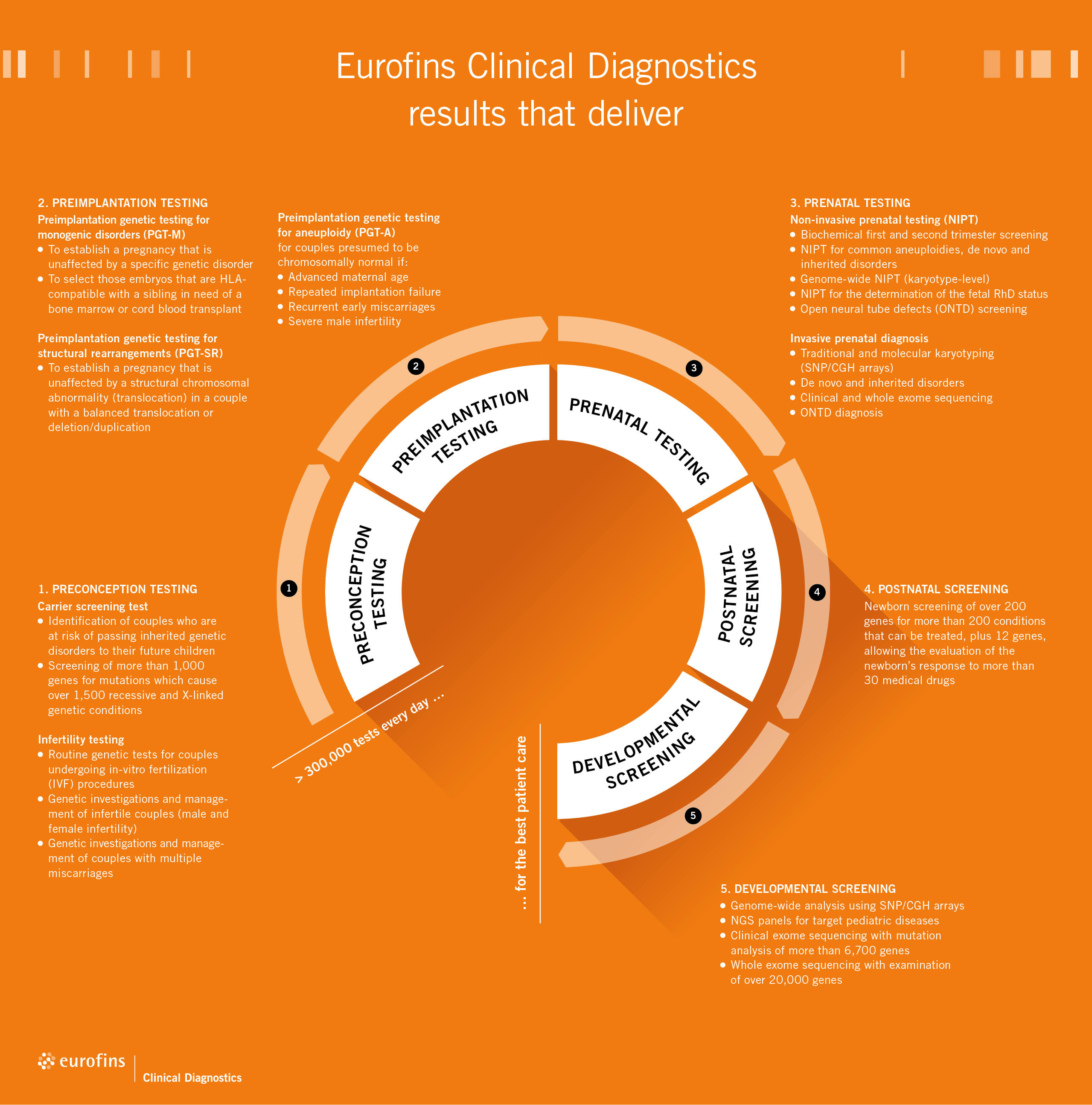 Eurofins clinical diagnostics laboratories offer a complete set of invasive and non-invasive prenatal testing services. Early and accurate detection is crucial in the case of pre-eclampsia, prenatal aneuploidies or infections.