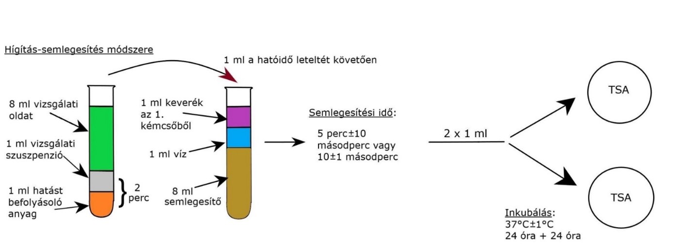 „Kézfertőtlenítő szerek esetén a vizsgálandó termékminta meghatározott mennyiségét külön-külön hozzáadjuk a baktériumokból, élesztősejtekből és/vagy penészgomba spórákból készült tesztszuszpenzióhoz és valamilyen hatást befolyásoló anyagot (általában a szennyeződést modellező anyag, amivel a tiszta és szennyezett körülményeket modellezzük) tartalmazó oldathoz. A keveréket 20±1 °C-on tartjuk általában 1 perc ± 5mp-ig. A hatóidő letelte után a baktérium- és gombaölő hatást a megfelelő módszerrel leállítjuk” – mondta el a szakember. Ezután határozzák meg az adott mintában túlélő baktériumok, élesztősejtek és penészgomba spórák számát és a csökkenést cfu/ml értékbe átszámítva.